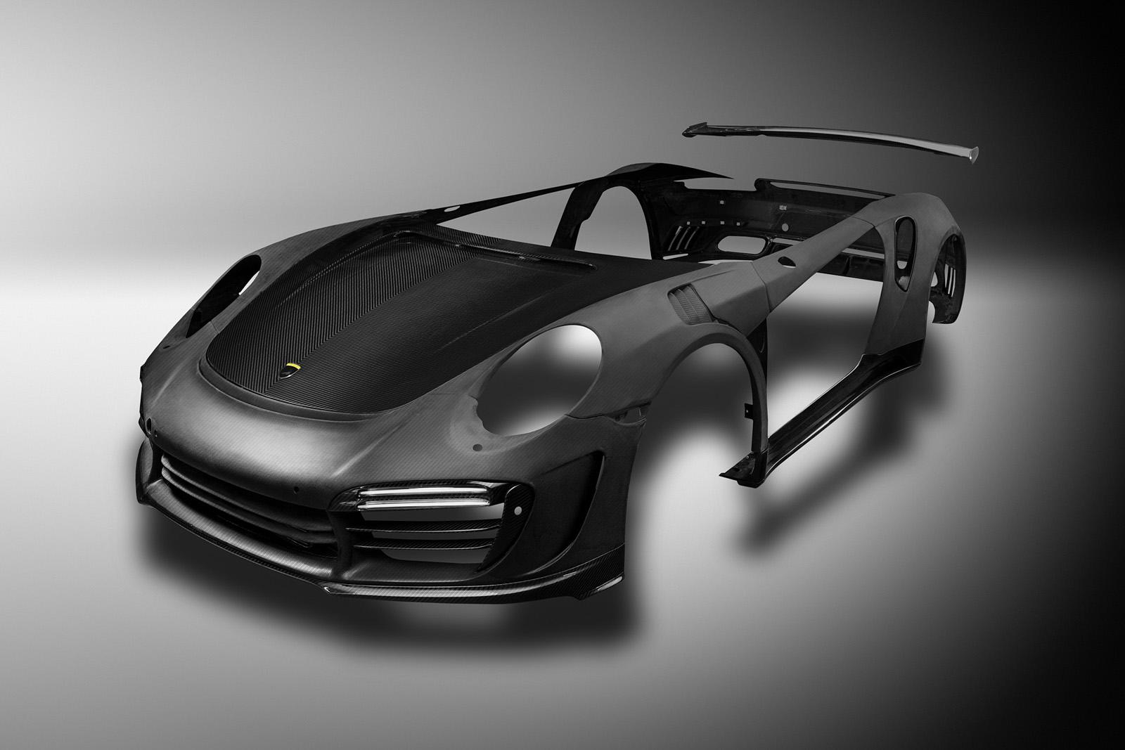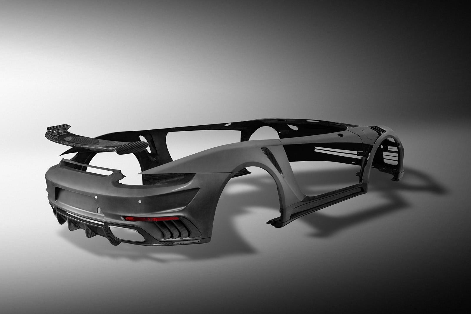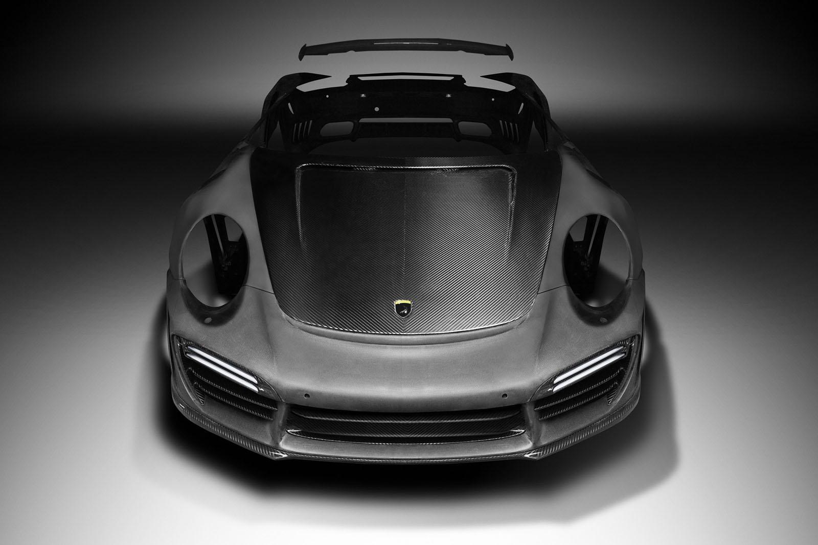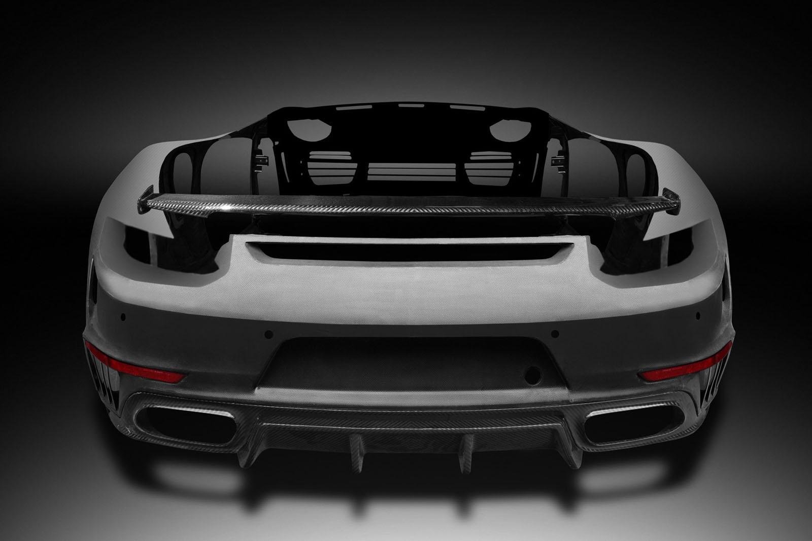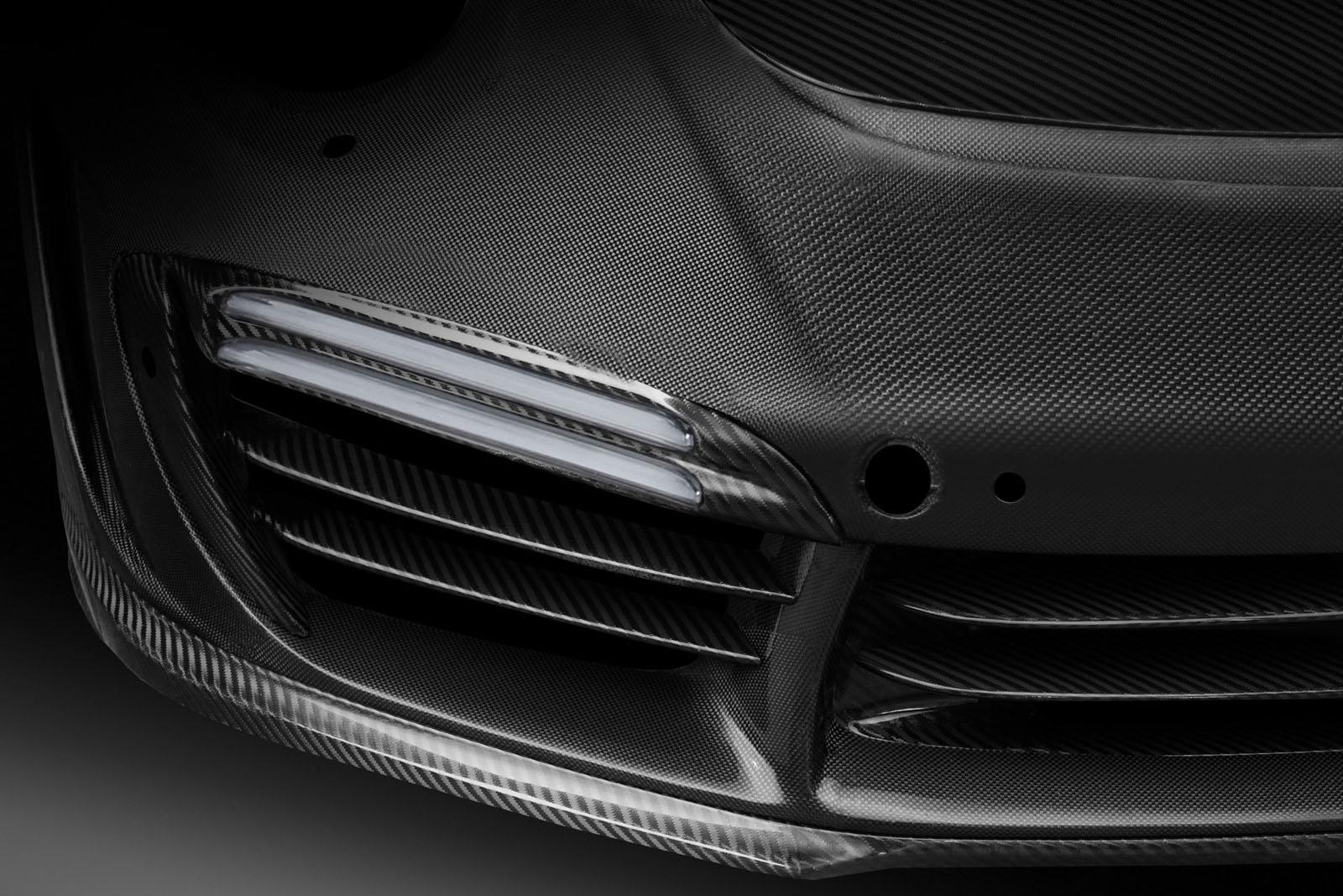 Le kit carbone se compose de nouveaux pare-chocs, de jupes latérales, de boucliers, ainsi que d’un aileron. Le préparateur n’a pas communiqué beaucoup d’informations sur sa nouvelle création, cependant nous savons que son prix s’élève à 37 500€, avec un supplément de 4 200€ pour s’offrir les ailes à la façon GT3 RS.