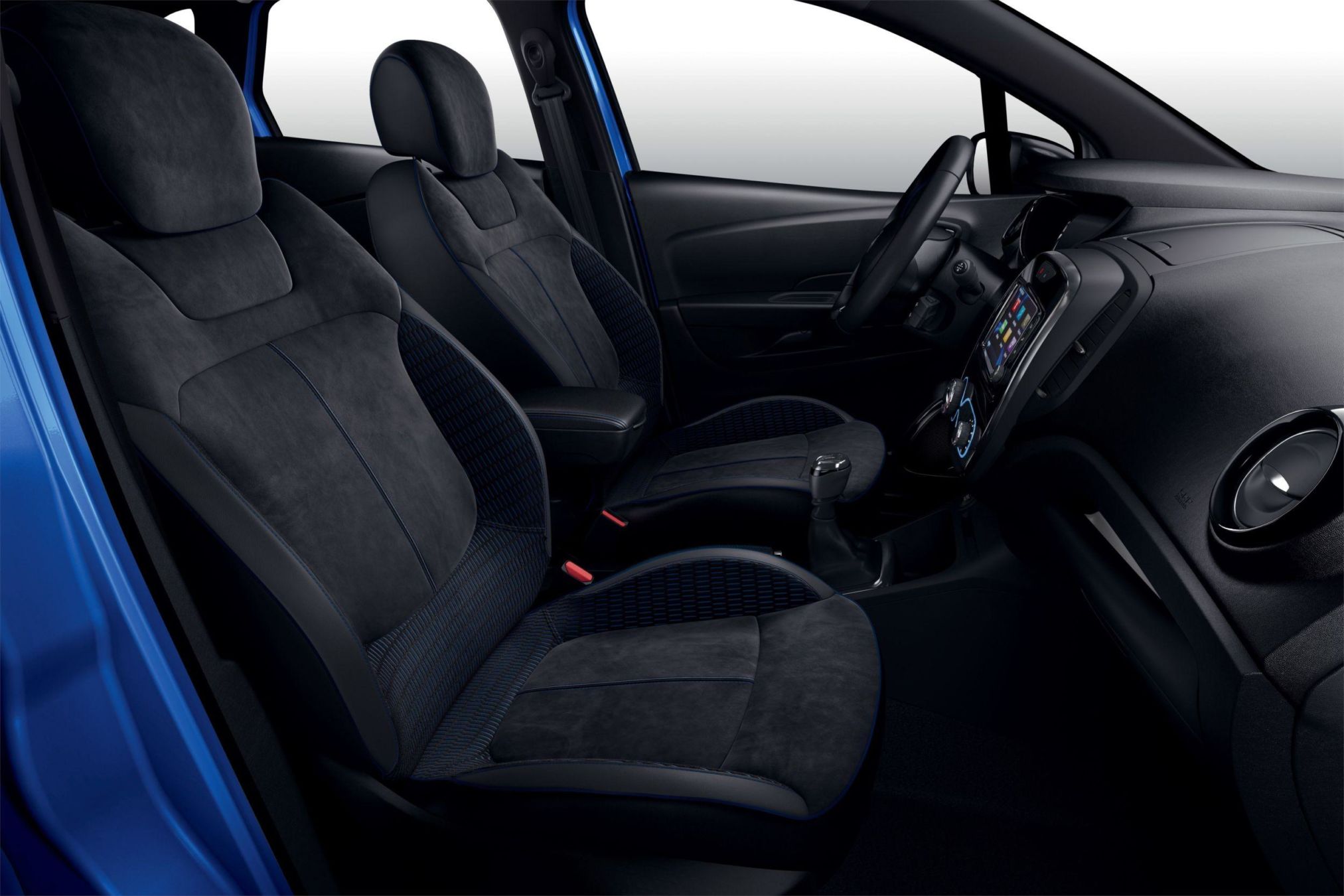A son bord, la sellerie fait la part belle à l’alcantara et au simili cuir surpiqué de bleu pour rappeler la teinte extérieure.