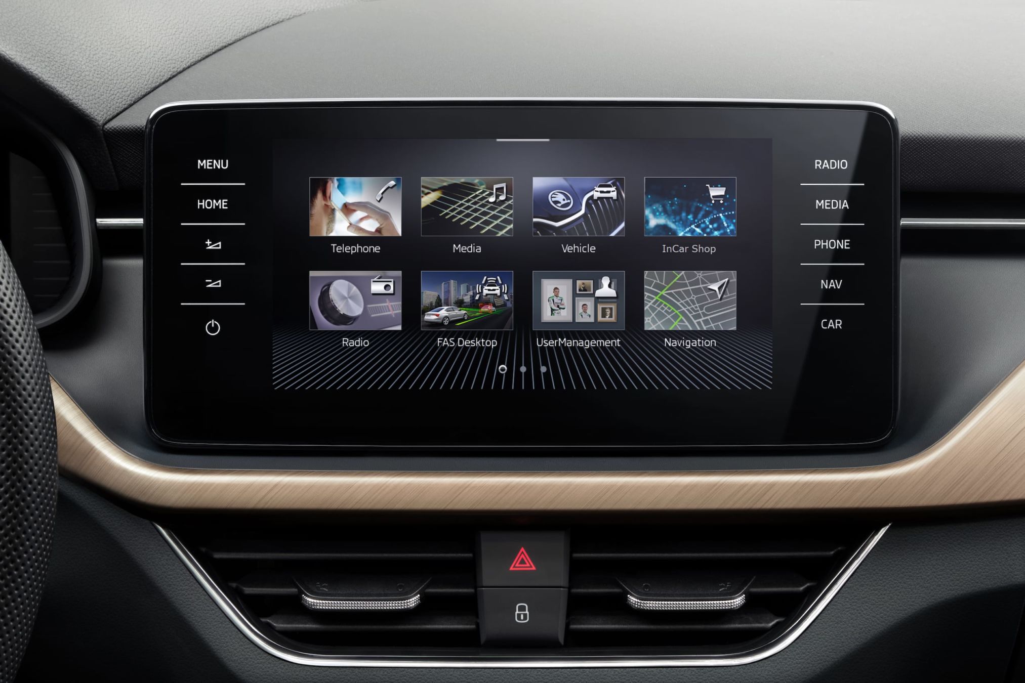 Et bien, on peut le dire, Skoda a décidé de jouer la carte de l’originalité. Malgré l’utilisation d’une plateforme VW, le constructeur tire plutôt bien son épingle du jeu avec un intérieur fortement éloigné de ses cousines. On aime ! Toutefois, les technologies utilisées restent identiques. Ainsi, nous retrouvons un virtual cockpit ainsi qu’une système multimédia, apposé sur la planche de bord.
