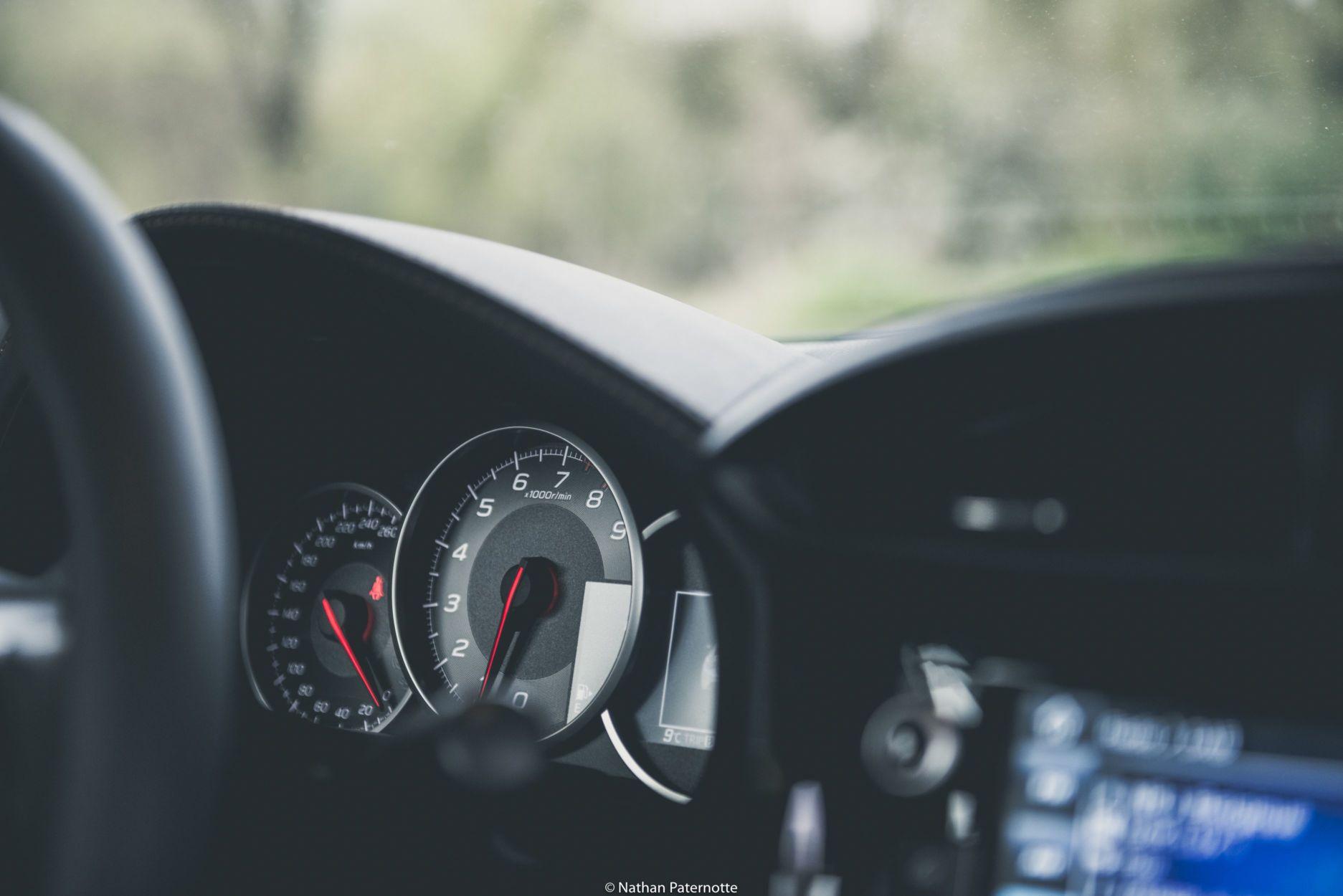 A son bord, l’ambiance minimaliste nous séduit directement. Il faut dire qu’à l’heure actuelle, même une petite citadine est souvent mieux équipée qu’une grosse berline du début des années 2000. Ce petit “retour en arrière” nous éveille même une certaine nostalgie de cette époque. Un volant de petite taille, des compteurs n’affichant que le strict minimum en dehors des aiguilles de régime et de vitesse, … Dans cette voiture, tout est pensé pour offrir un maximum de fun. Le levier de vitesse est parfaitement positionné et jouit d’un débattement très court; un véritable joystick. Le pédalier, en aluminium, est également parfait pour la pratique du talon pointe. Mention spéciale à la course de la pédale d’embrayage, très courte.