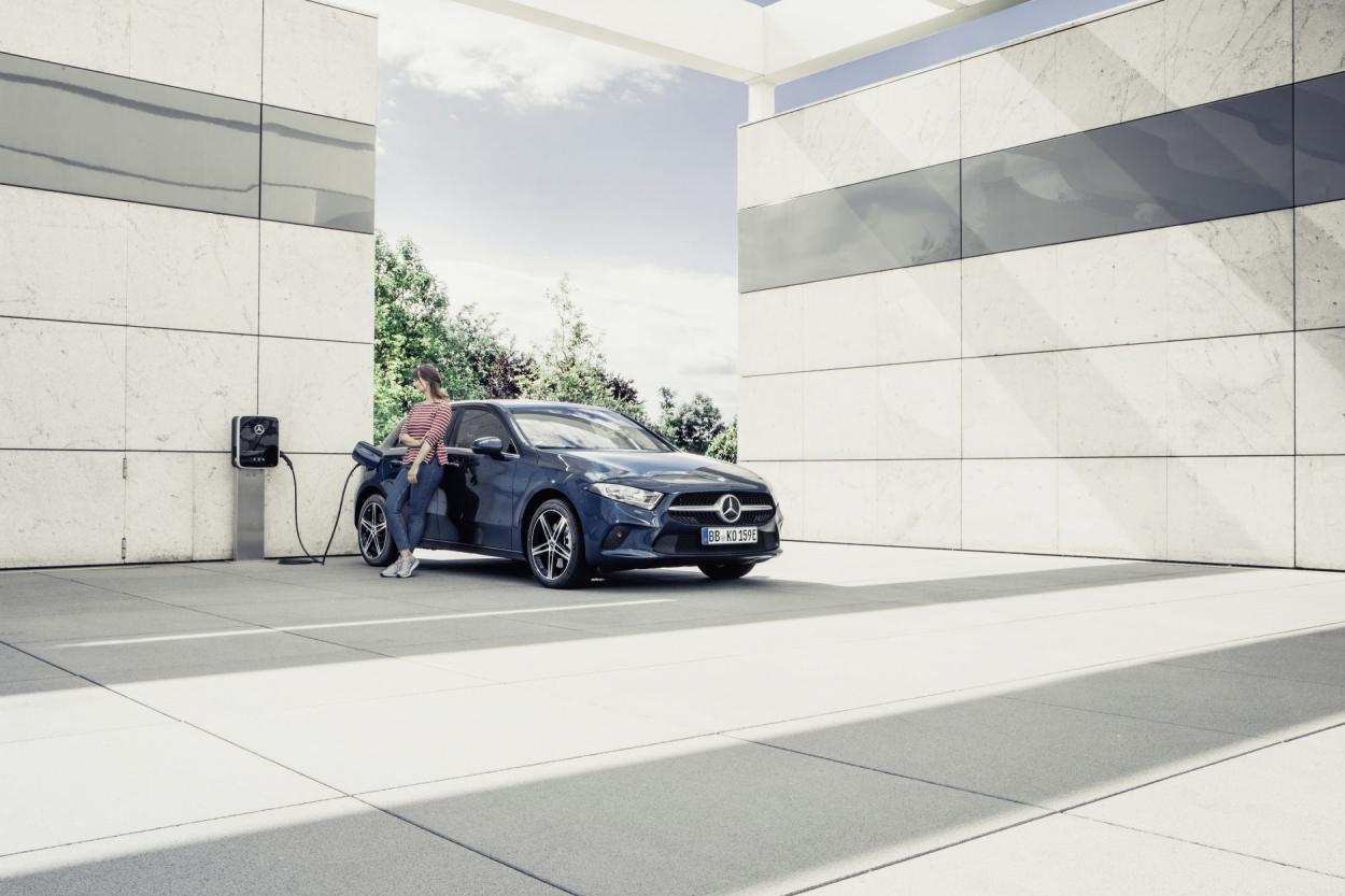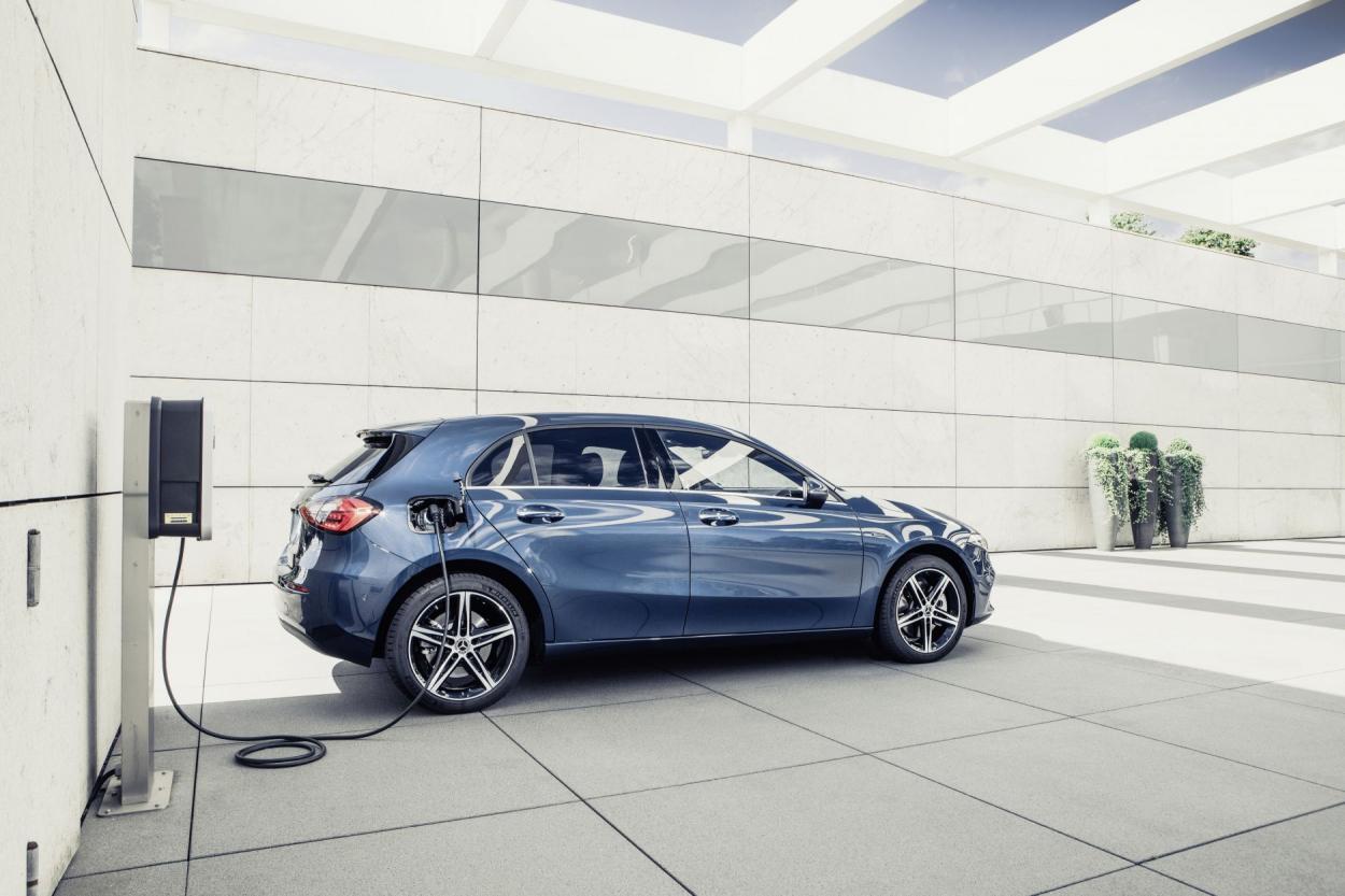 La A 250 e se contente ainsi de 6,6 secondes pour accomplir le sprint de 0 à 100 km/h, et sa vitesse maxi est de 235 km/h. Le stockage d’énergie électrique est assuré par la batterie haute tension lithium-Ion d’une capacité totale d’env. 15,6 kWh rechargeable à une source d’énergie électrique externe. Les A 250 e et B 250 e peuvent être rechargées par un courant alternatif ou continu. Une prise de charge correspondante est implantée sur le flanc droit du véhicule. Les modèles hybrides rechargeables compacts peuvent ainsi être rechargés par du courant alternatif (CA) de 0 à 100 % SoC (Status of Charge, français : état de charge) sur un boîtier mural de 7,4 kW en 1 h 45 min. Le temps de charge en courant continu (CC) est d’environ 25 minutes pour passer de 10 à 80 % de charge (SoC).