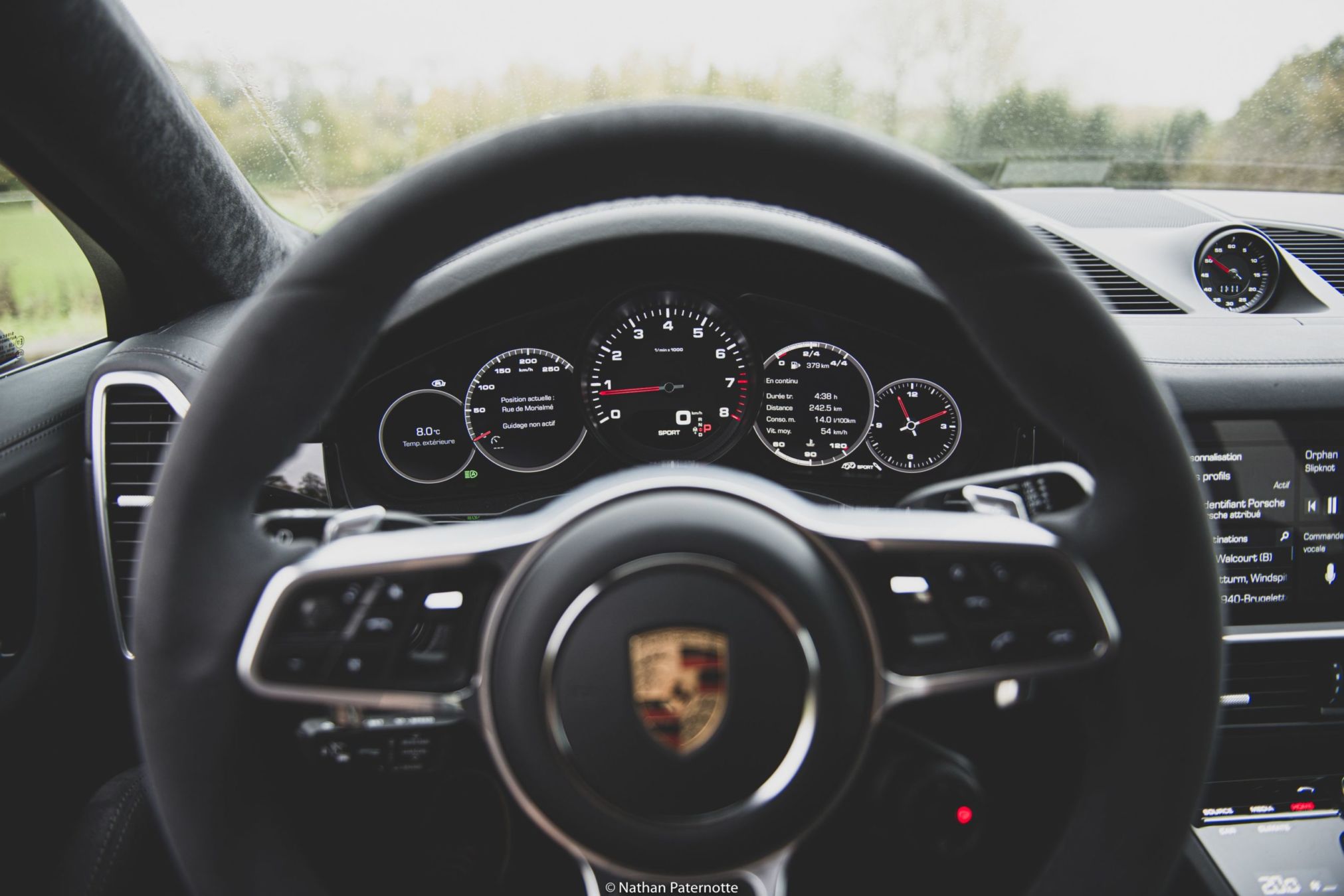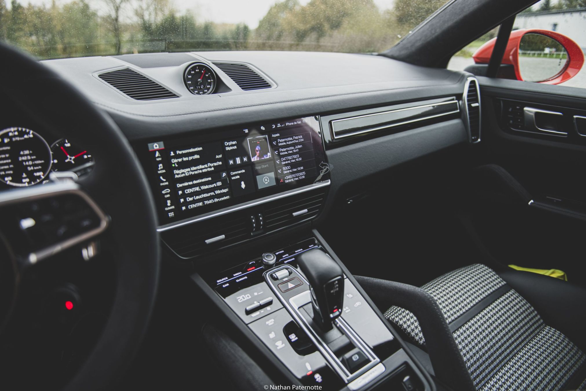 A l’avant, pas de réel changement à constater, en dehors de la sensation d’être dans un véhicule plus “compact” que dans le Cayenne. Il ne s’agit cependant que d’une impression. En dehors de cela, le niveau de finition correspond sans surprise aux standards de la marque. La qualité d’assemblage et les matériaux respirent la qualité. La nouvelle console centrale, ornée de sélecteurs tactiles, remplaçant les boutons, est très simple d’utilisation, mais nous semble malgré tout un poil trop distrayante lors d’une utilisation en cours de route. La section multimédia est gérée par un grand écran tactile de 12,3 pouces. Le conducteur peut également déporter certaines informations, telles que l’ordinateur de bord ou la navigation dans son cockpit semi virtuel. Ce dernier fait d’ailleurs un joli mix entre le numérique et l’analogique, conservé pour le compte tour, entre autres. Un affichage tête haute est aussi proposé pour permettre de garder les yeux sur la route en tout temps.