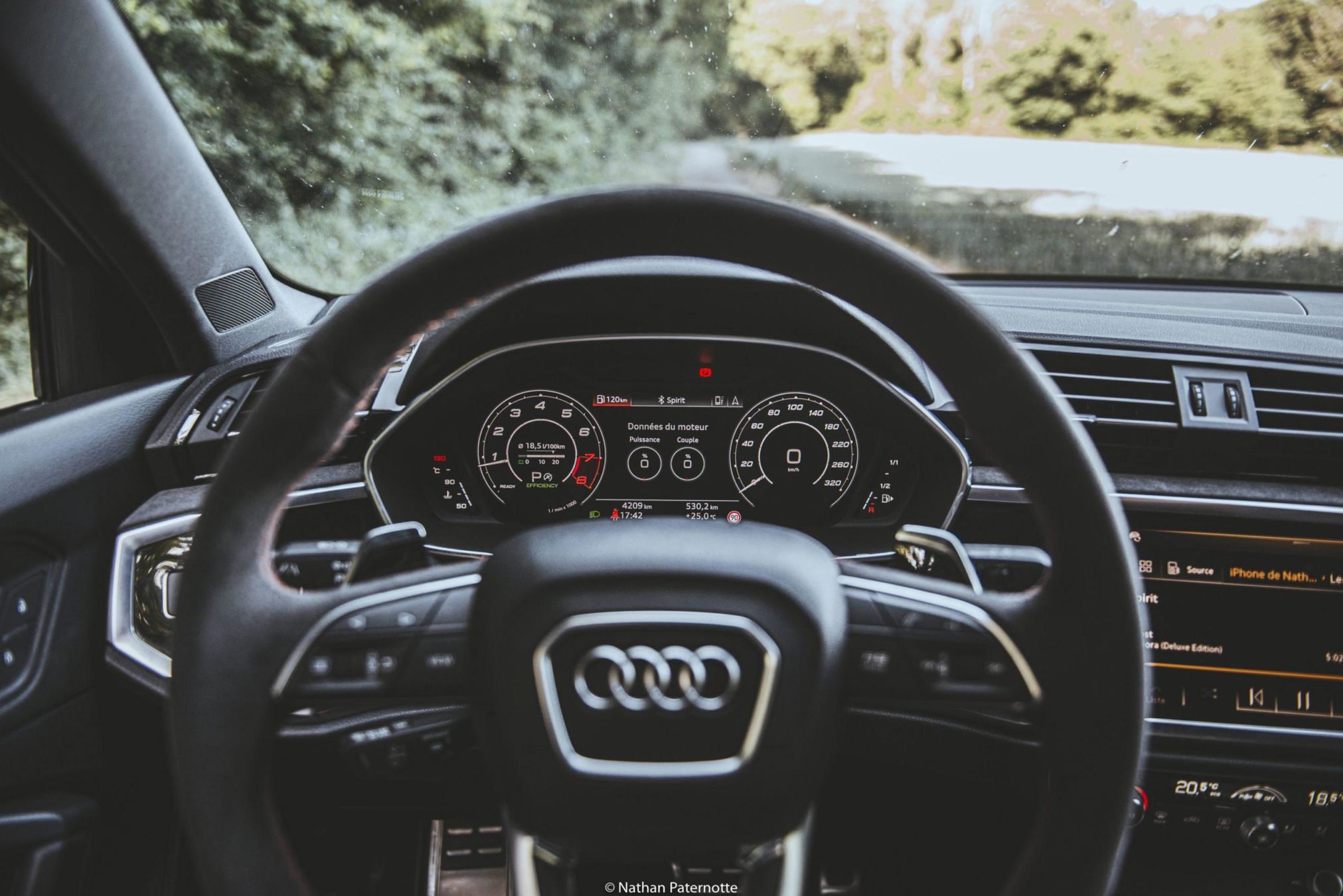 Comme indiqué en début d’essai, “notre” RS Q3 est toujours animé par le charismatique cinq cylindres en ligne Audi. Malgré son adaptation aux normes européennes en vigueur, Audi a pu lui permettre de conserver sa cavalerie de 400 équidés, pour un couple de 480 Nm. Il est systématiquement couplé à une transmission intégrale Quattro et à une boîte double embrayage à sept rapports. Avec ce package, le SUV expédie le 0 à 100 km/h en seulement 4,4 secondes.